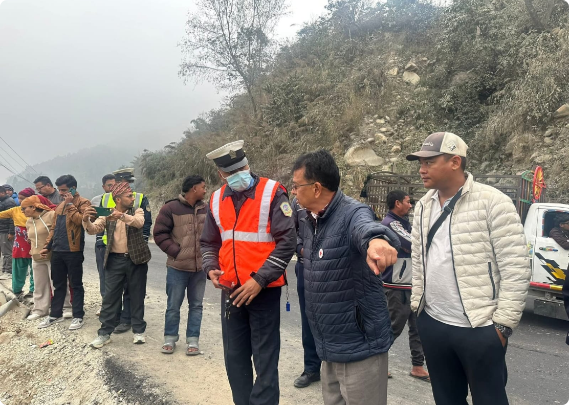 धादिङ बस दुर्घटनास्थलमा राजेन्द्र पाण्डेको अनुगमन, उद्धार र उपचारमा समन्वय